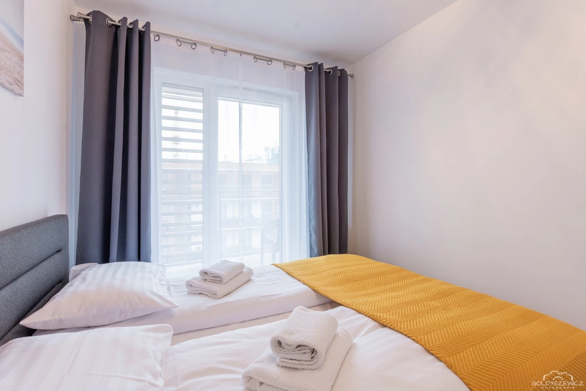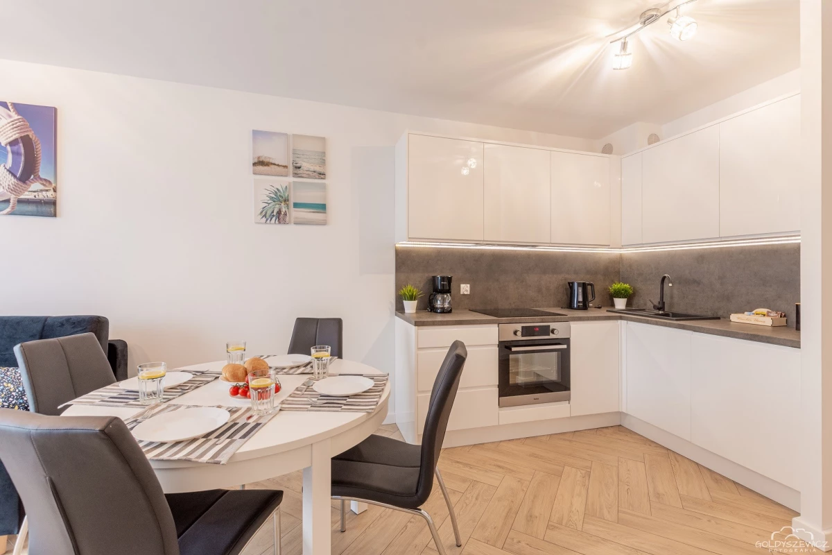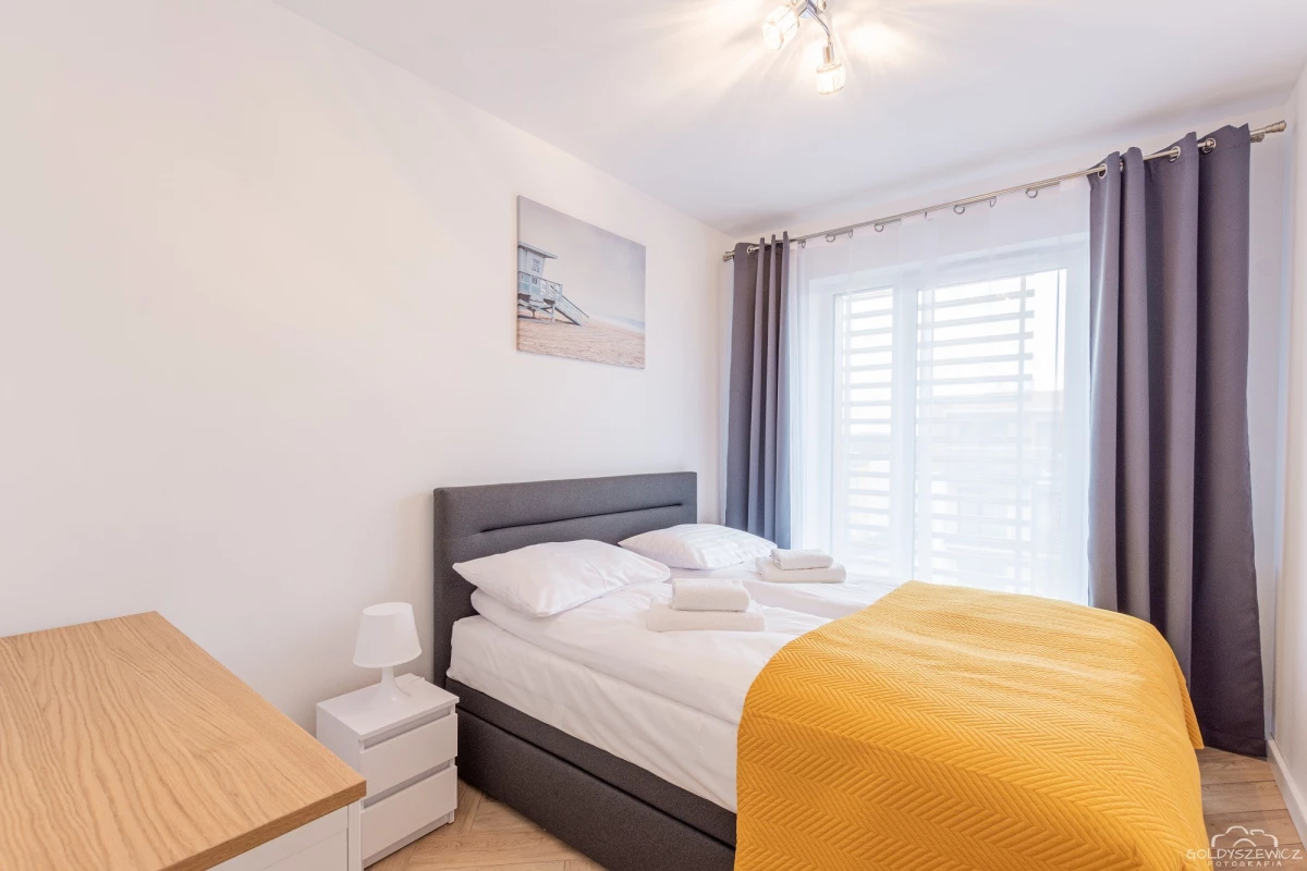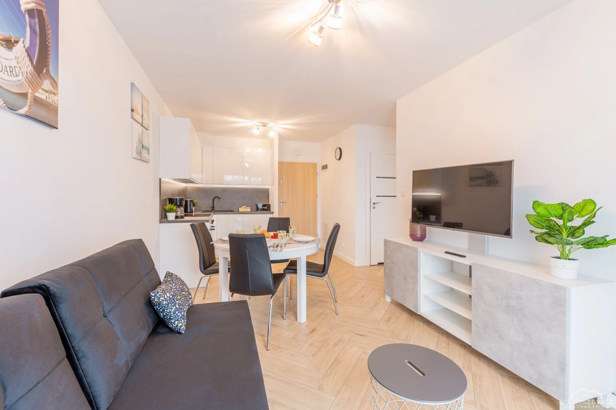 Stylowy apartament zlokalizowany na osiedlu Nawigator w Kołobrzegu przeznaczony jest dla maksymalnie 4 osób. Ma powierzchnię użytkową ok. 38m², apartament znajduje się na zamkniętym osiedlu Navigator, budynek posiada windę. Na apartament składają się jedna zamykana sypialnia z łóżkiem małżeńskim, salon z aneksem kuchennym (wyposażonym w zmywarkę, piekarnik, itd.) , balkon oraz łazienka z prysznicem i pralką. Jest również miejsce postojowe.