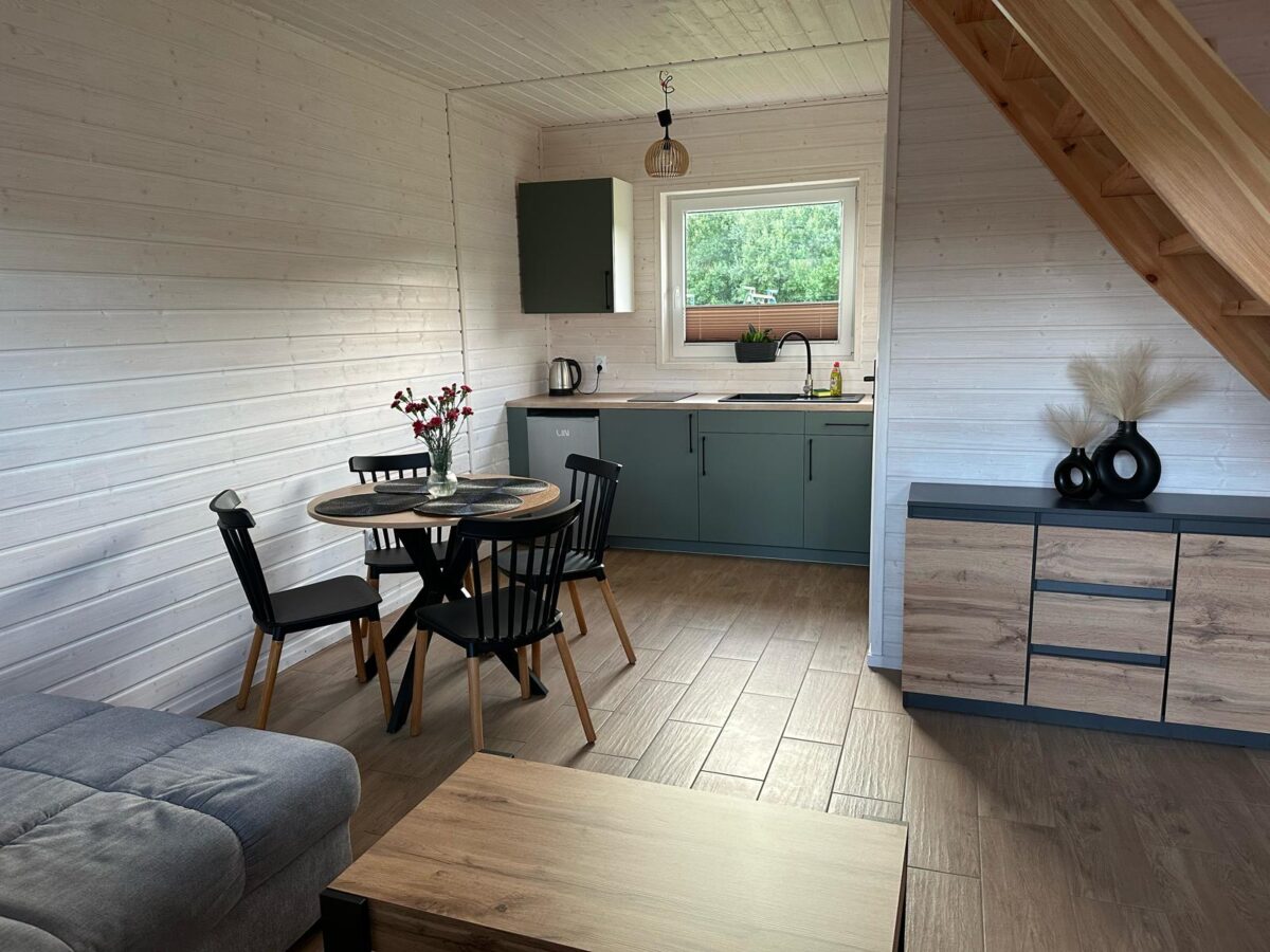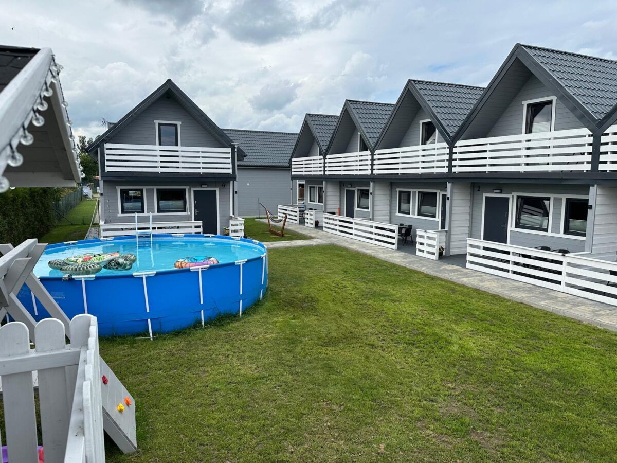 Domki położone są w spokojnej, zielonej okolicy, zaledwie dwie minuty spacerem od piaszczystej plaży. To doskonałe miejsce zarówno dla rodzin z dziećmi, jak i par szukających chwili wytchnienia nad Bałtykiem.